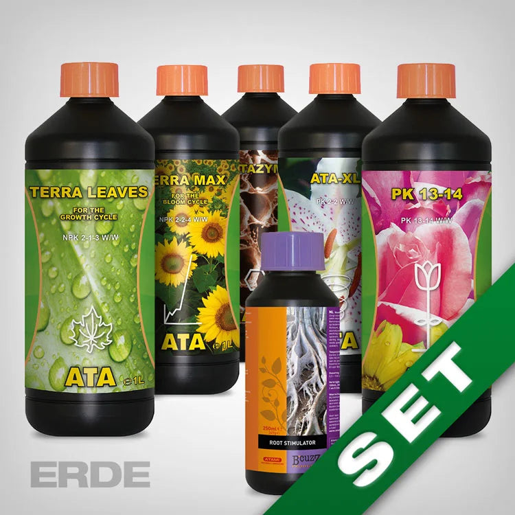 Bestehend aus Wurzelstimulator, Wuchs- und Blütedünger, Blütedünger-Ergänzungsmittel und einem Multi-Enzympräperat stellt dieses Atami-Düngerset eine komfortable Komplettlösung für die Zucht auf Erde und ähnlichen Substraten dar. Ebenfalls im Lieferumfang enthalten ist eine Flasche ATA XL, das Wundermittel für Wuchs und Blüte, welches die Pflanzennahrung abrundet.