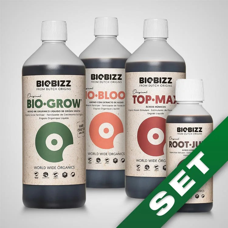 Alles drin, was deine Pflanzen brauchen: Das Biobizz Dünger-Komplettset enthält alle BioBizz-Produkte für den gesamten Lebenszyklus vom Keimling bis zur Frucht. So hast du zum günstigen Paketpreis alles parat – einfacher geht’s nicht.