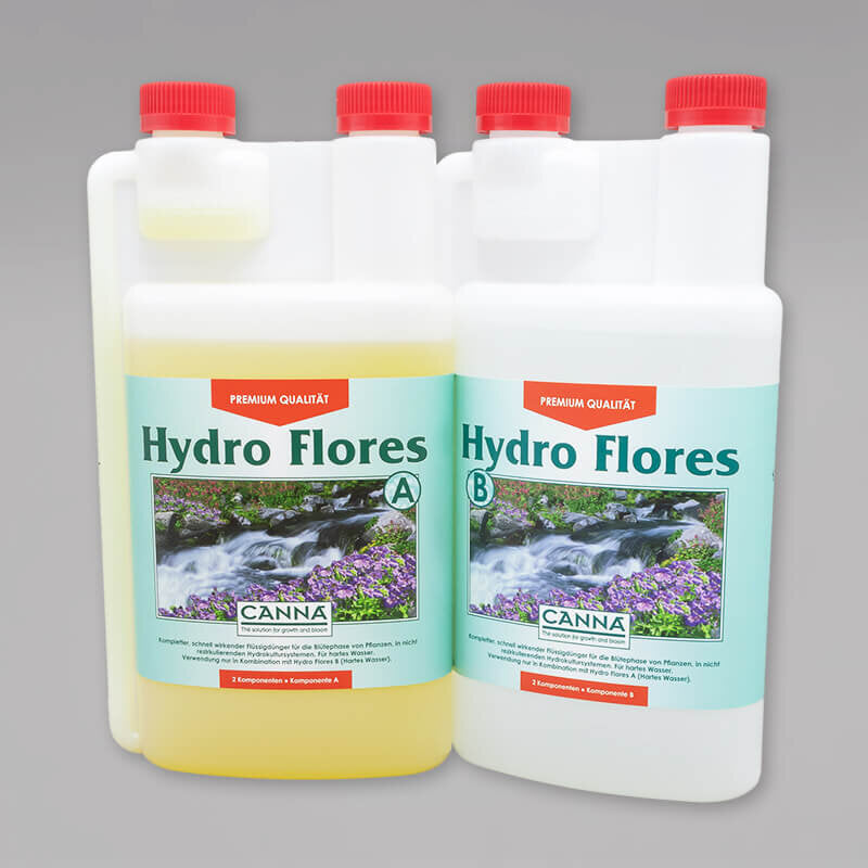 Canna Hydro Flores A und B ist ein Komplettdünger für die Blütephase auf run-to-waste Hydrosystemen. Durch die spezielle Zusammenstellung liefert Canna Hydro Flores A und B deinen Pflanzen Nährstoffe auf direktem Weg. Um eine ertragreiche Blüte zu sichern, enthält Hydro Flores neben chelierten Spurenelementen reichlich Phosphor und Kalium.