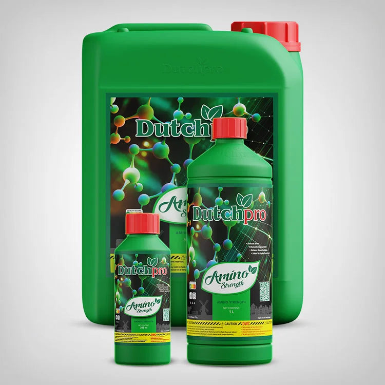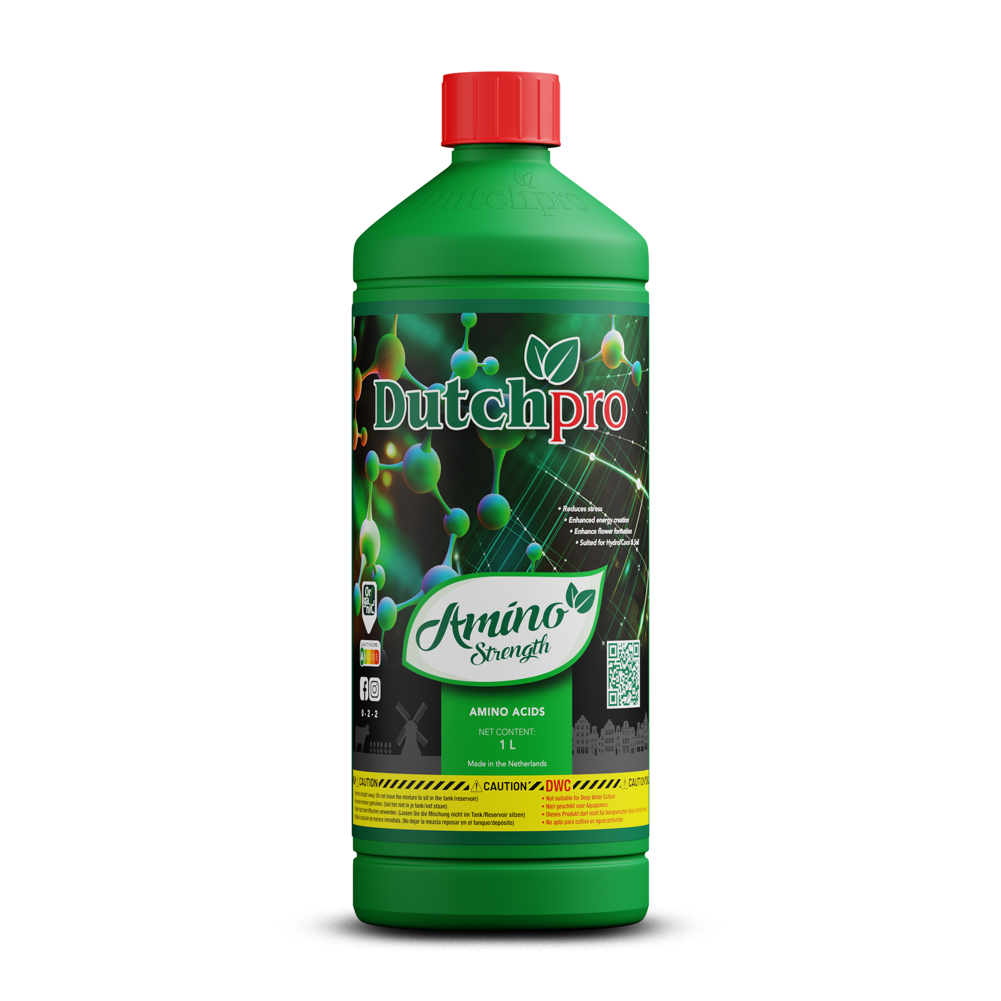 Alle wichtigen Aminosäuren für kräftiges Wachstum und mehr Blüten: Dutch Pro Amino Strength enthält 18 von 20 wichtigen Aminosäuren, die deine Pflanzen bei der Proteinsynthese und der Produktion von Chlorophyll unterstützen. Weitere positive Effekte: Die Zellwände werden gestärkt und Aufnahme von Kalzium verbessert. Außerdem werden deine Pflanzen resistenter gegen Stress, Schädlinge und Krankheiten. Du kannst Dutch Pro Amino Strength bei allen gängigen Anbaumethoden wie Hydroponik, Erde oder Kokos verwenden.