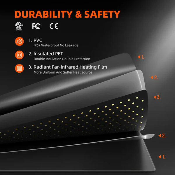 - Material: PVC, doppelt isoliertes PET, Ferninfrarot-Heizfolie