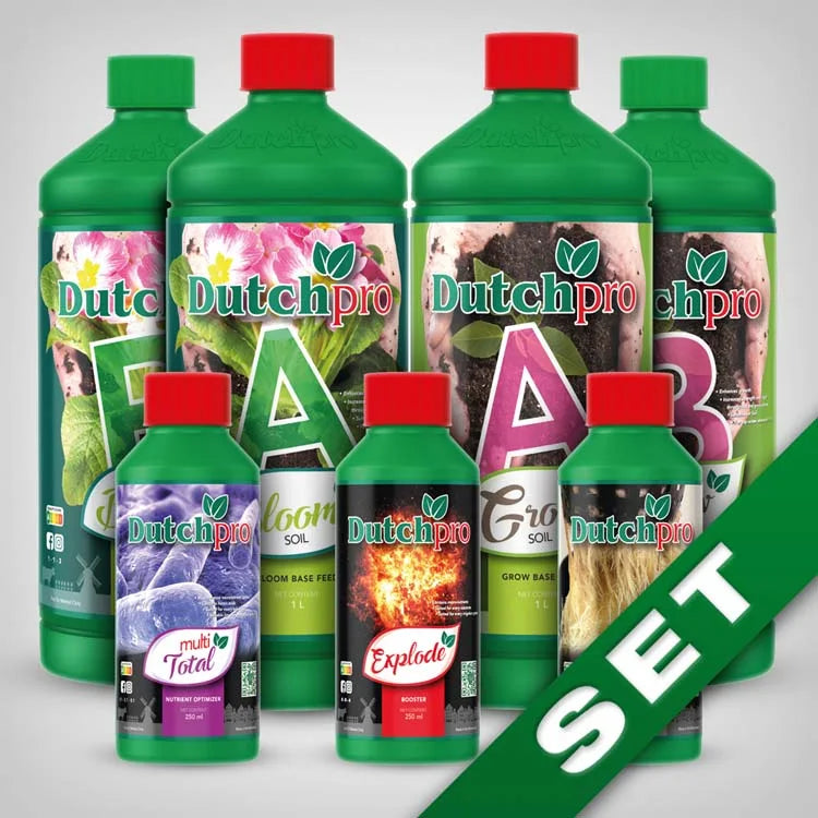 Wenn Du gerade erst mit dem Growen beginnst oder die Top-Produkte von Dutch-Pro einmal testen willst, ist das Starter-Set Erde eine gute Wahl. Es ist gedacht für Grows auf Erdsubstraten bei der Verwendung von hartem Gießwasser (z. B. Leitungswasser). Im Set enthalten sind 2-Komponenten-Volldünger für Wachstums- und Blütephase sowie drei kraftvolle Booster.