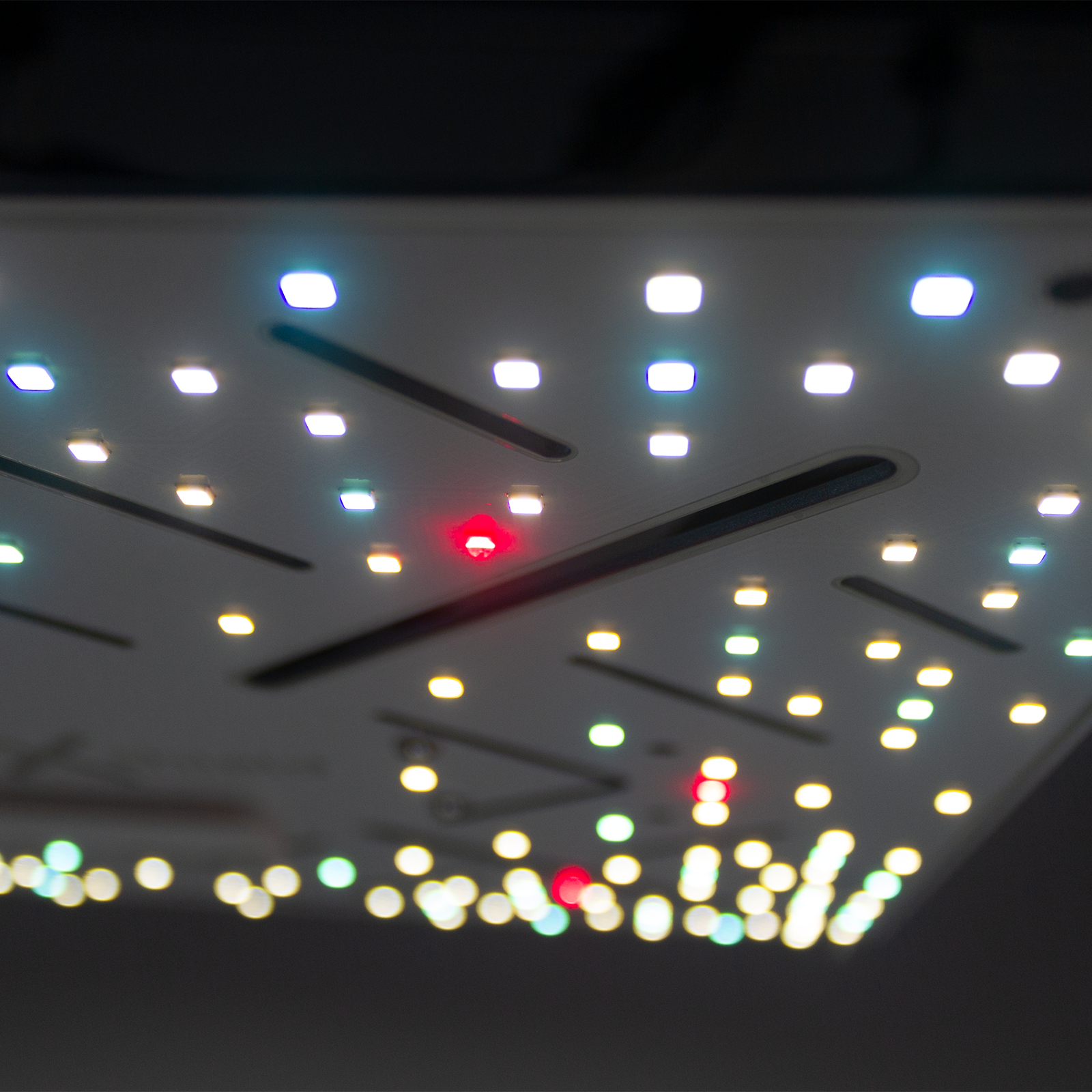 Anordnung für eine diffuse und gleichmäßige Ausleuchtung. Die Vorderseite der Leuchte ist durch eine Acrylbeschich-